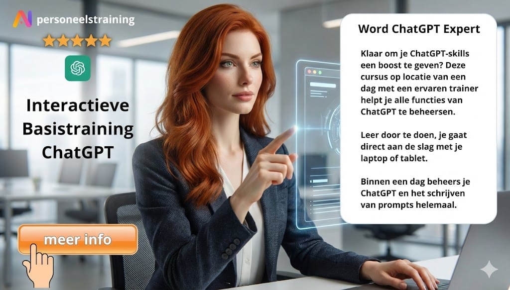 Wil je de Perfecte Prompt leren schrijven en nog veel meer? Ontdek meer over onze workshop en trainingen op Onze opleidingen pagina.